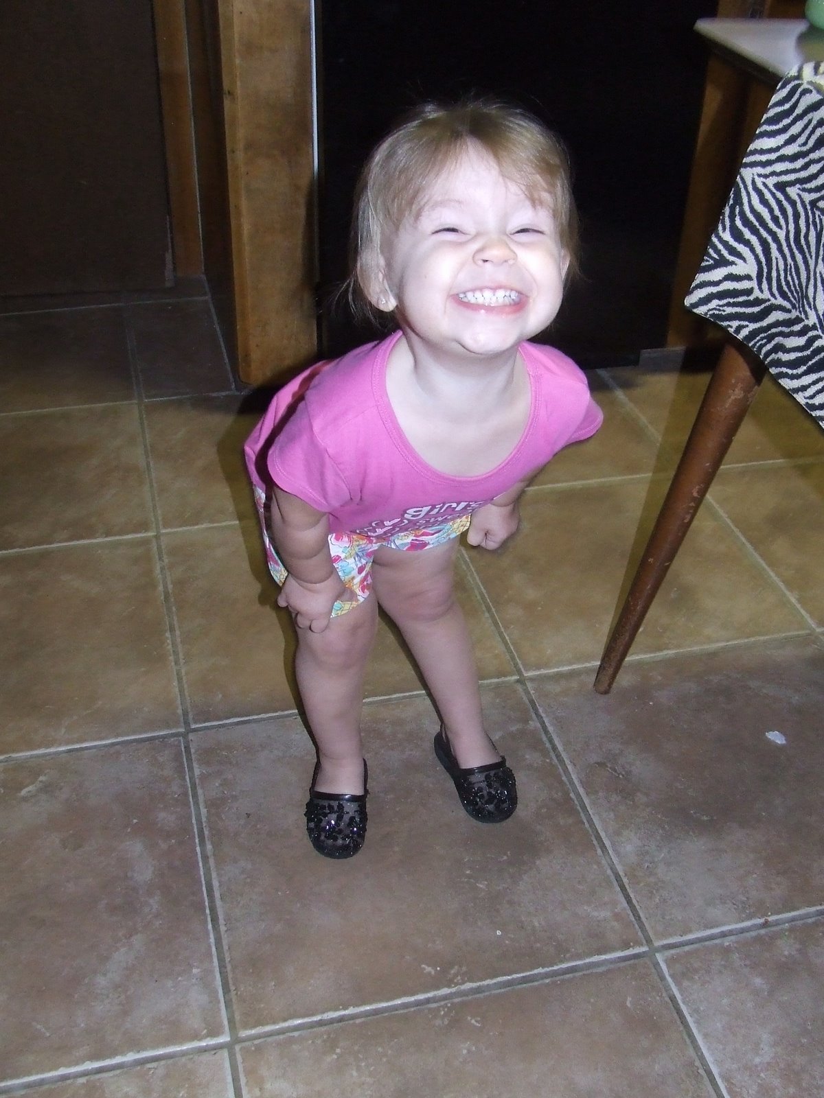 She is such a ham as usual and I had to post these pics…she got these new little shoes and she was just prancing around in them like a ballerina….such a cutie! Oh…and she also now knows all of her A,B, C’s 🙂 She’s our little genius!