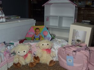 Then we opened presents and everyone gave us so many nice things!! We got several little preemie things, which are just amazingly small and I can’t imagine two little babies coming out of me and being that small.