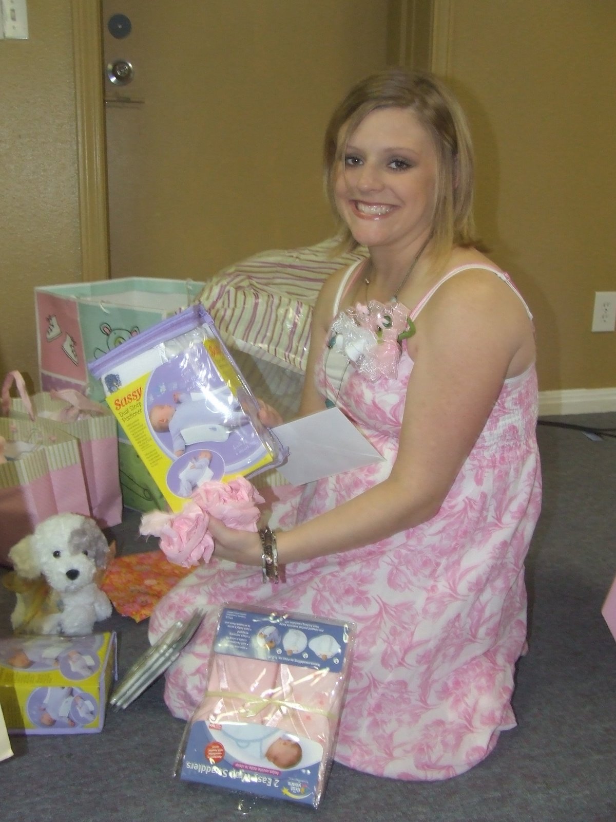 My future sister in law 🙂 , Alexis, hosted a beautiful shower for the babies. Everything was so cute and came in two’s, which you would think I would eventually get used to but it still feels so weird to open two dresses, two carseats, two of this and two of that 🙂