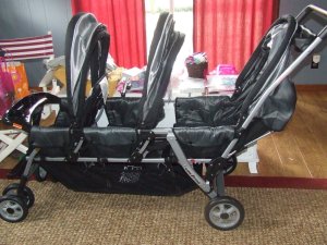 Oh and finally…here is the pic of our monstrous stoller π I think I may need to get a blinker on it or something. lol. Sometimes I look at it and think, ” is this really my life??” Thank you to all of our family that had a part in giving this to us!! We will definitely get lots of use out of it for the next several years!!! Now if only I could find someone to push me around in it π Bj asked how in the world we were supposed to turn in it and I said you don’t …you just go straight. π