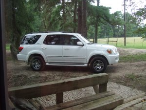 So on the way home we traded in our Sequoia, which was a lease, for another Sequoia π This time we own it!! Yeah!!! We have been talking about doing it for so long, and finally decided it was time.