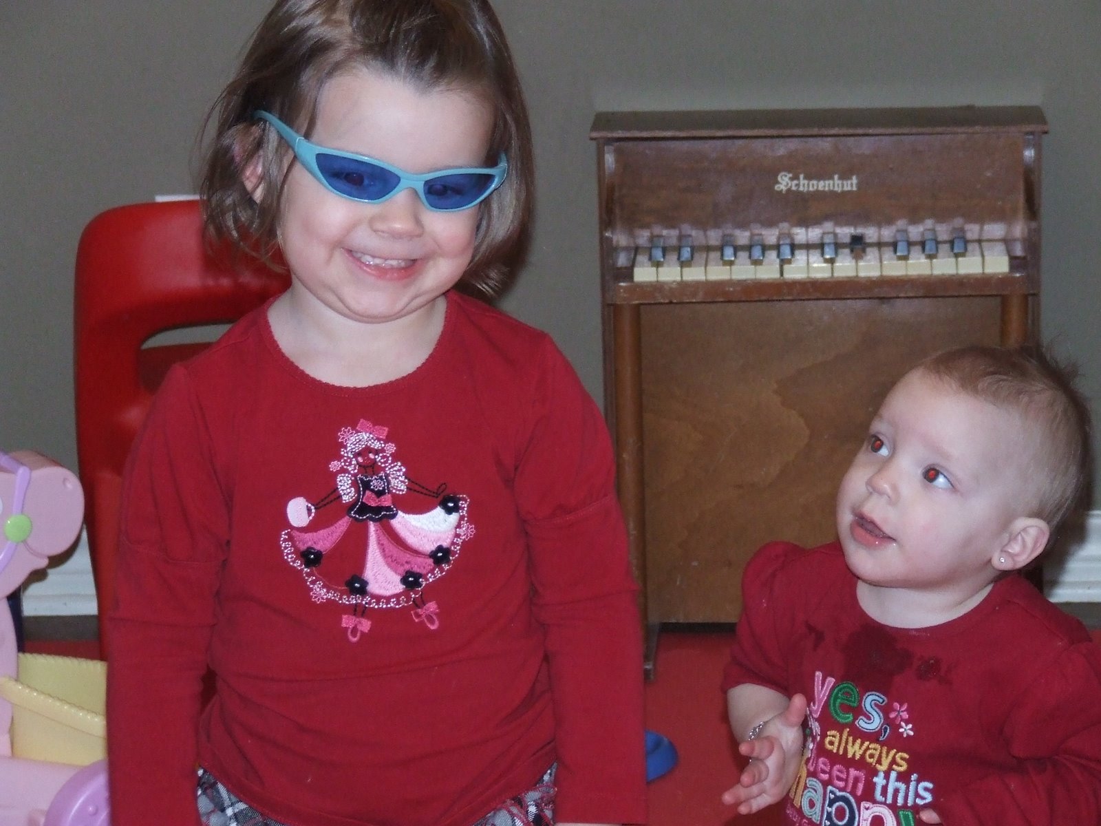 Preslyn, adoring her big sis…Ella being too cool for school…and Preslyn, always being the nut of the family