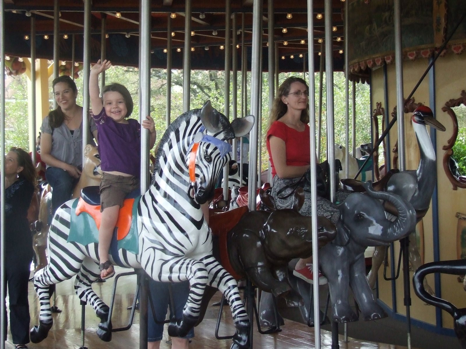 We had a great time, Hayden was so excited and loved seeing the animals. I think she loved the zoo playground, carousel and the petting zoo the best. She said her favorite animal was the goat. Kind of dissappointing but oh well. She liked brushing him in the petting zoo. We really liked the giraffes. They are just so tall when you are standing right there in front of them! Oh, also the gigantic python and King cobra were pretty phenomenal to see. I would be totally scared to death if I ever came face to face with one outside that glass window. And then there was this one animal, I can’t remember what it was called, but it was a cross between a donkey and a zebra??? Strange!