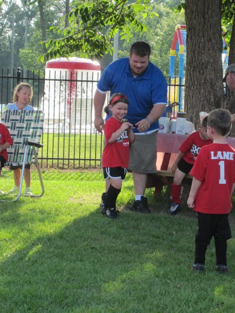 We finished out Hayden’s soccer league with a team party and a trophy. She was so proud to get that trophy. Her little red bulls team was so much fun and lots of adventure. Most of the season was spent with us parents trying to keep our children on the field for the duration of the games. Mind you, the games are 30 minutes long MAX! Hayden scored lots of goals and stopped lots of goals, when she would play goalie. She really had a fun season and that’s all that matters. A definite improvement from last year.