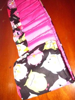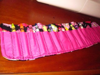 I have had this on my Christmas to-do list since this summer and I finally had a chance to make it and am very pleased. This little crayon rollup will be great for Hayden because she is very into drawing and coloring. It will be great for grabbing when we go to restaurants or dr. offices so she can bring her colors with her! I think she will like it and I’m proud that I got it done early 🙂