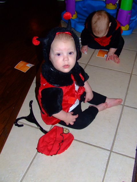 So she went with one of her dress up costumes that she got for her birthday and went as “Tracy Turnblad” from HAIRSPRAY. And the two wee’s went as Lady Bugs.