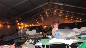 We stowed our bikes and then got in line for the prize of the day π PAPPASITOS had been catered in and never smelled so good. Talk about motivation to finish day 1!Β After dinner we went to stand in line at the shower truck. I had really low expectations for these showers and kind of had them pictured like a shower port-o-potty. so when we walked up we found two surpises: ONE the ladies line was considerably shorter than the mens. (when does that EVER happen??) and TWO the showers were just like college dorm showers. With the little changing area and then the shower. And the showers were GLORIOUS! Oh seriously I have never loved a shower more. It was so hard to turn that water off and leave. I could have stayed in there for days. But that shower made me feel like a new woman. We made our way back to the tent to get rested up for day 2. In bed by 9pm π I can’t remember the last time I did that.