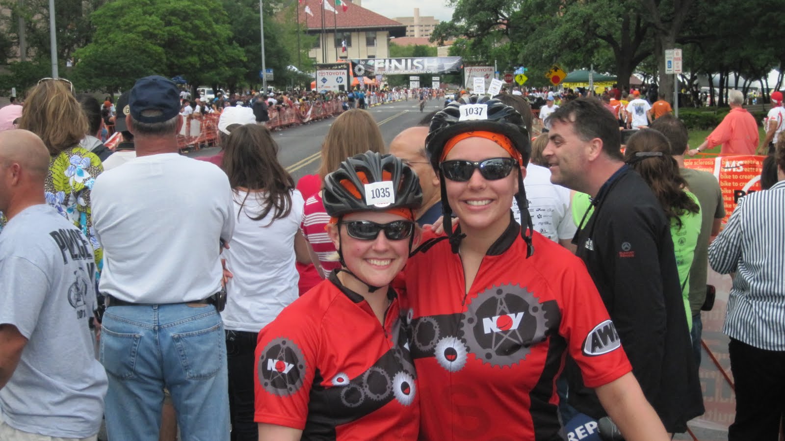 This past weekend my bestest, Deborah and I, my brother in law Britton, his buddy BlakeΒ and our friends Bryan/Brian all participated in the BP MS150 Bike Ride. It was such an accomplishment to roll through that finish line! It was so hard at times and my knees tried to disown me many times πΒ But we all finished!