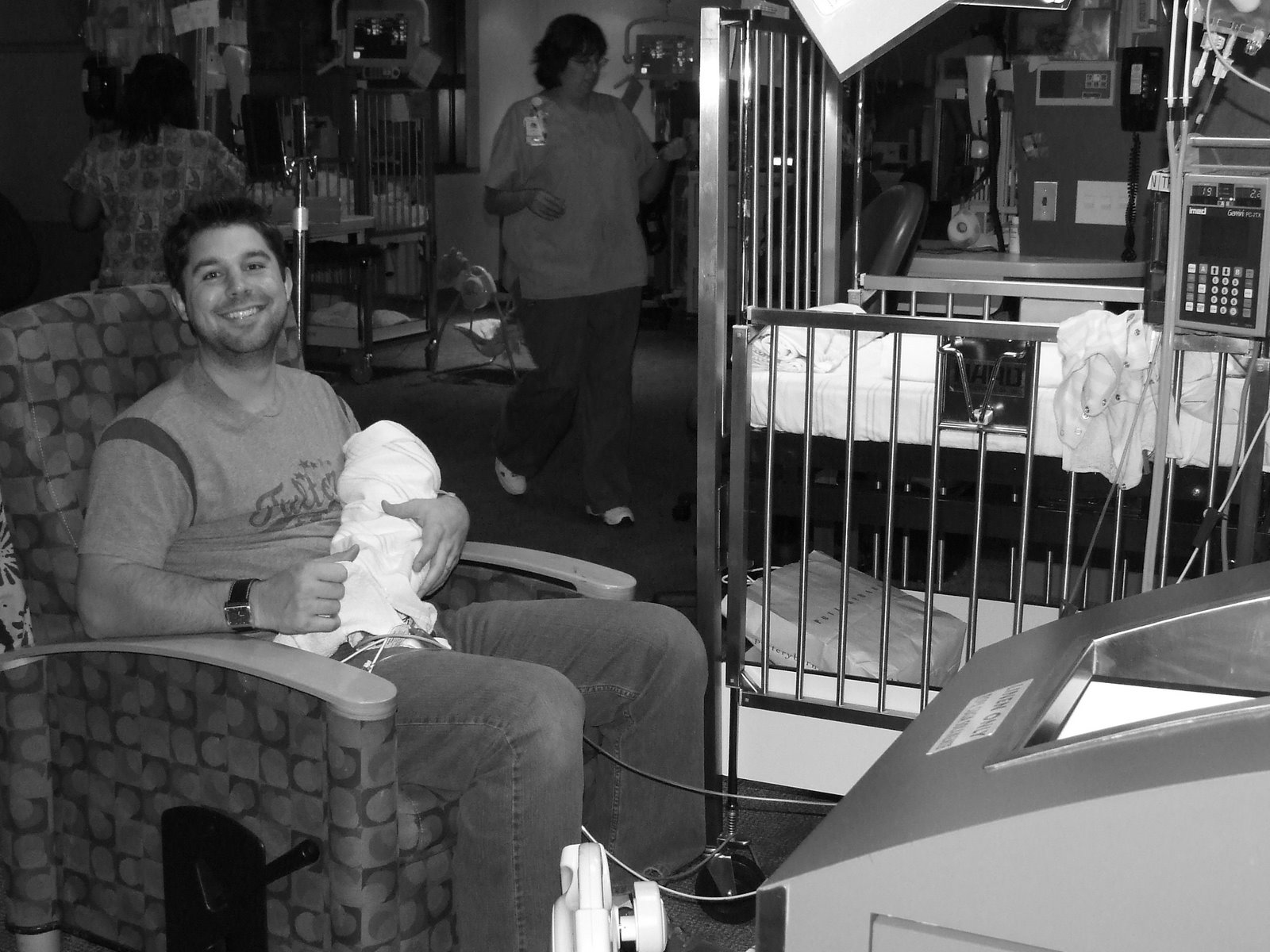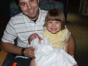 So we got in and started stripping clothes and diapers off and weighing and measuring girls….