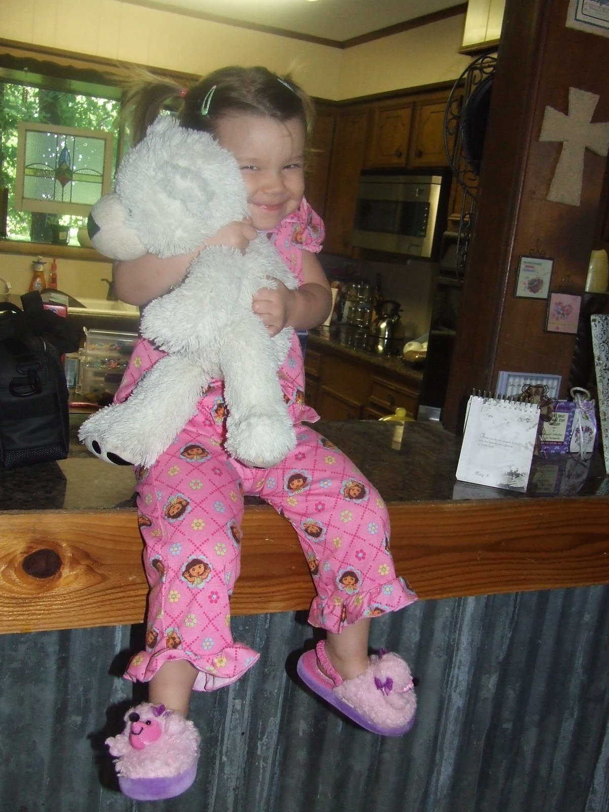 Hayden has been a hoot lately as usual. Today we were standing in line at the post office and there were about 5 other people there, and all of them were looking at Hayden as she put on a show. Well, all of the sudden she says to me, ” Mommy…did you hear my toot??” I kind of looked around quickly and smiled and told her in a hushed voice, “No, Hayden. Don’t do that.” So she still stares at me and forces out another one and yes, that time I heard it. I was so embarrassed and all of the other people snickered.
