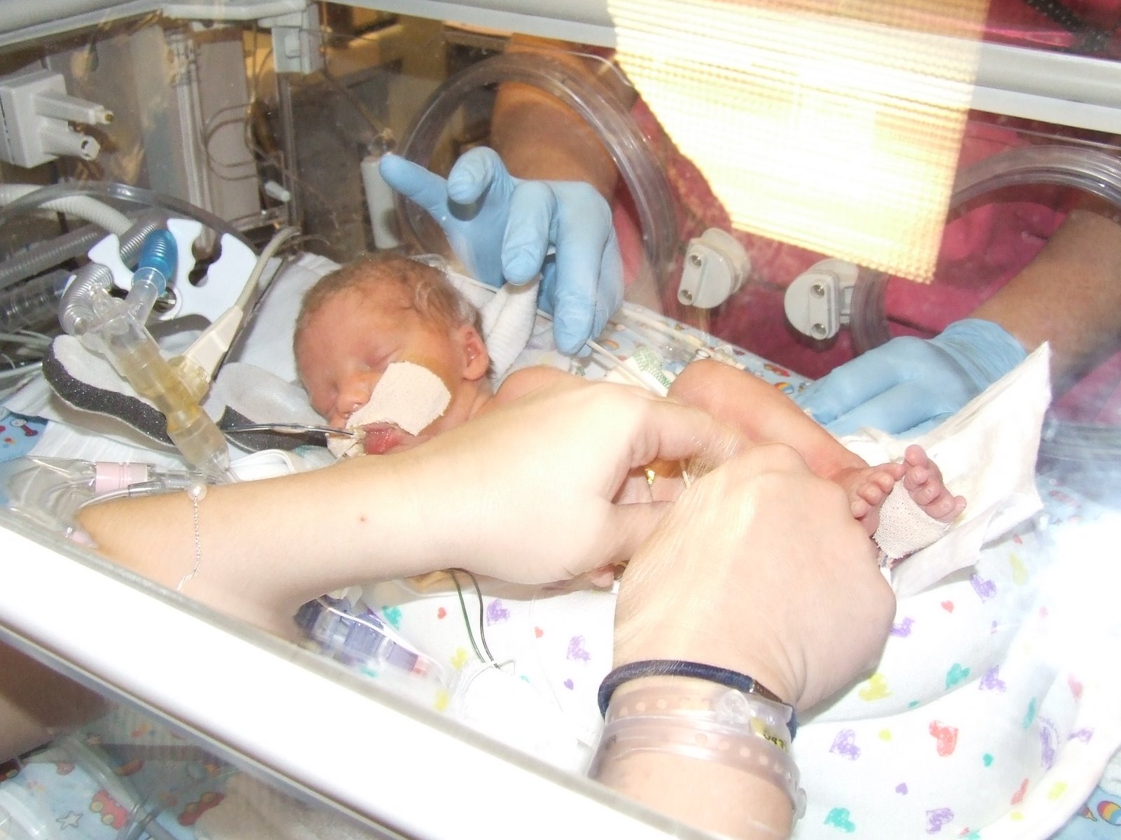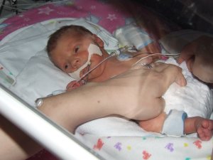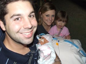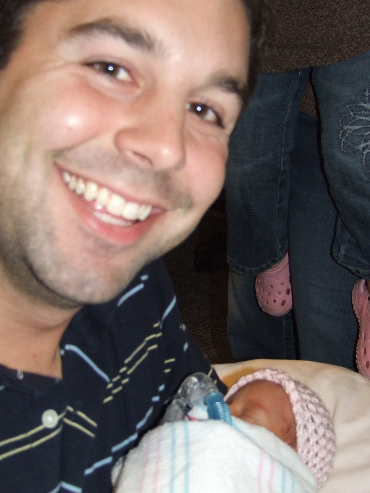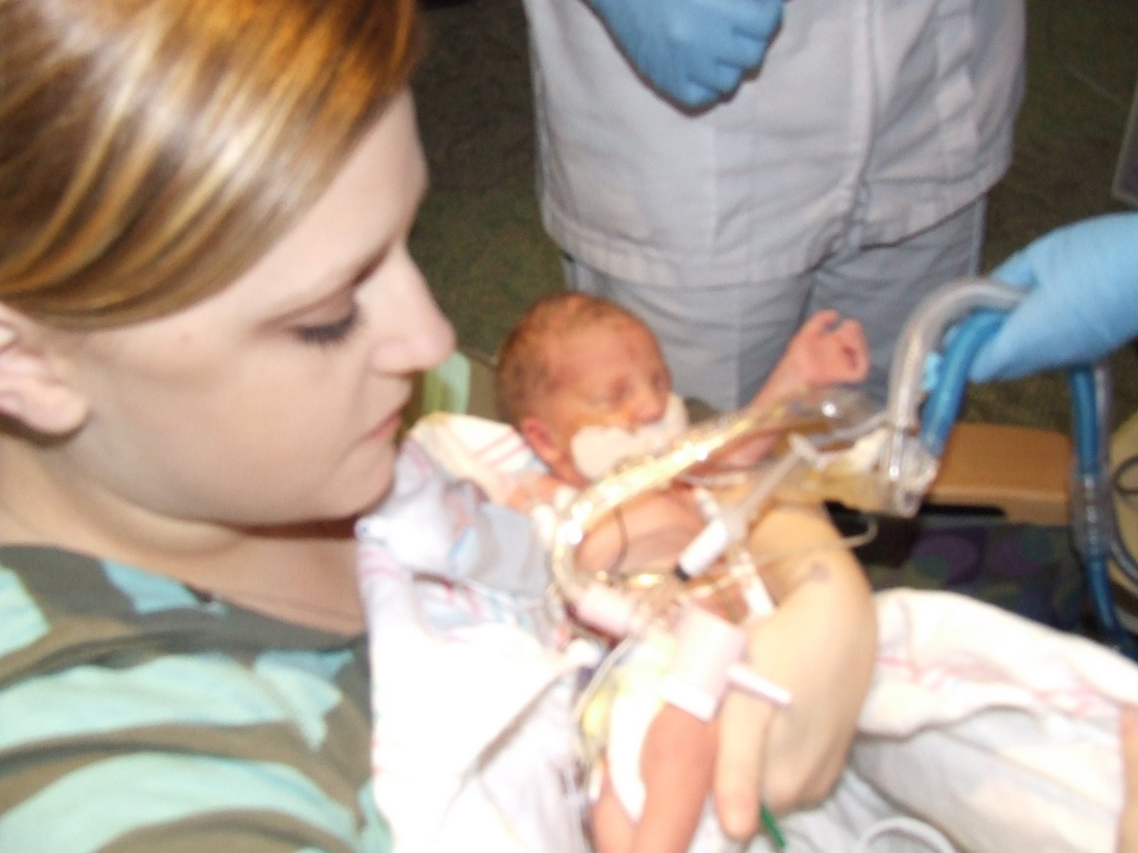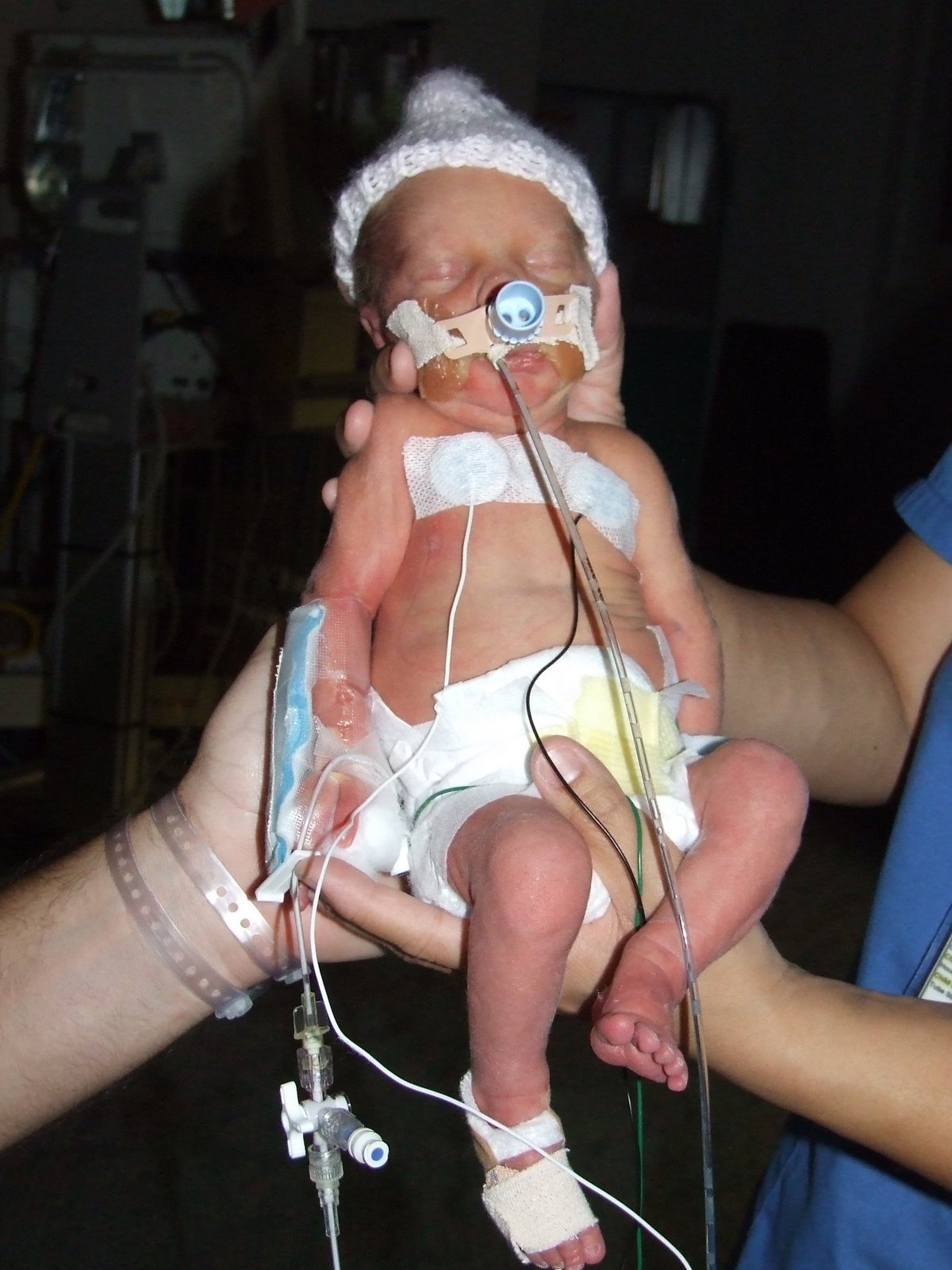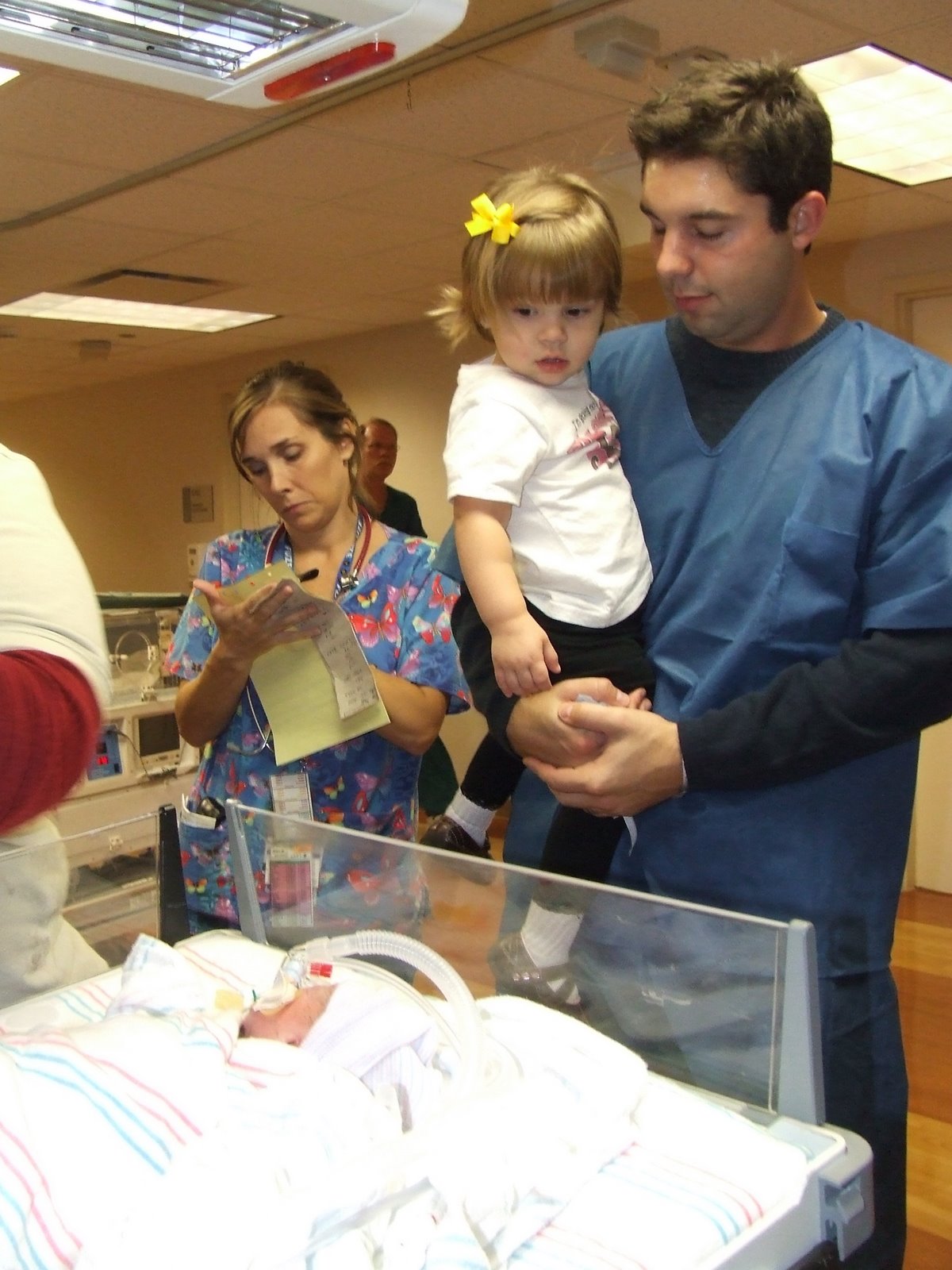 Last night BJ and I made the journey to see our girlies and did our first night of Kangaroo Care. Oh was it heavenly. BJ had to drag me out of that NICU. I held Preslyn and BJ held Ella and we just loved on each other and snuggled for over an hour. Both girls stats were so good while we were holding them, and a couple of times, they mellowed out so well that their heart rates dropped. Not anything scary, they just got so relaxed. I loved having her little warm body next to mine and hearing her little cry a couple of times and her little kitten noises. Oh I am in love 🙂