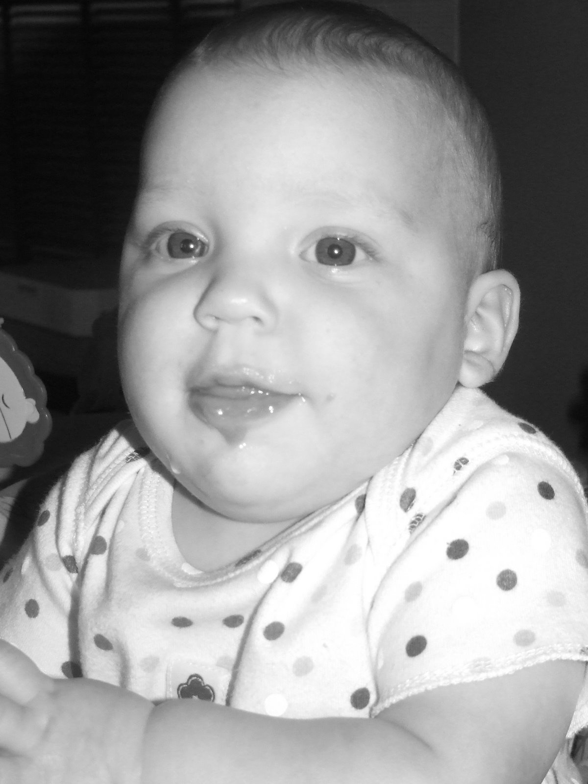 She was right on with all her development except that she doesn’t clap or do peek-a-boo yet. She only says one word as well. So we are going to work on those things for the next appointment. Other than that she is crawling, pulling up, sitting, laughing, looking when she hears a sound, etc.