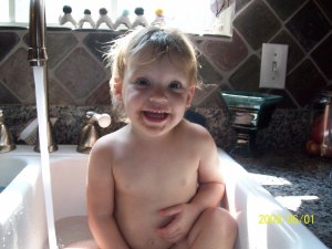 Preslyn rolled over last night 🙂 She has actually done it once before a while back but she apparently (i wasn’t there to see) had a blanket sort of bunched behind her back that time…this time it was flat on her back and she worked and worked so hard and then over she went all of the sudden 🙂 It was so great to see!