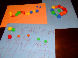 I picked up a pack of multicolored pompoms (not the cheerleader kind) and we are going to check those out today and fashion them into something crafty.