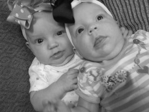 The babies are getting to be so much fun. They are both laughing and smiling and talking so much. Ella is a professional roller. She will not stay on her tummy unless she wants to. The second she changes her mind…over she goes. She’s even better than Preslyn. Preslyn is still working on rolling but still needs more practice. She is a jabberer though and wants her voice to be heard!