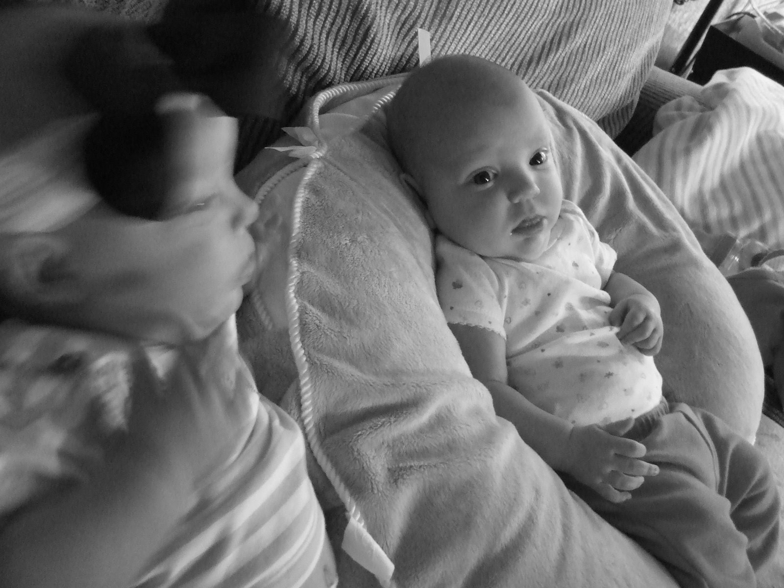 Some new things going on are…Ella discovered her hands and feet. Yesterday she was staring at her hand for so long and then today Misti, our nanny, found her playing with her feet!! So fun!!! We are getting their pictures taken very soon, so stay tuned for some adorable shots 🙂
